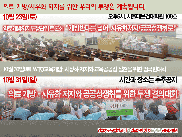 3261¹ø : [ÀÇ·á°³¹æÀúÁö°ø´ëÀ§]10/23ÀïÁ¡Åä·Ðȸ,10/31ÅõÀï´ëȸ ÀÖ½À´Ï´Ù!